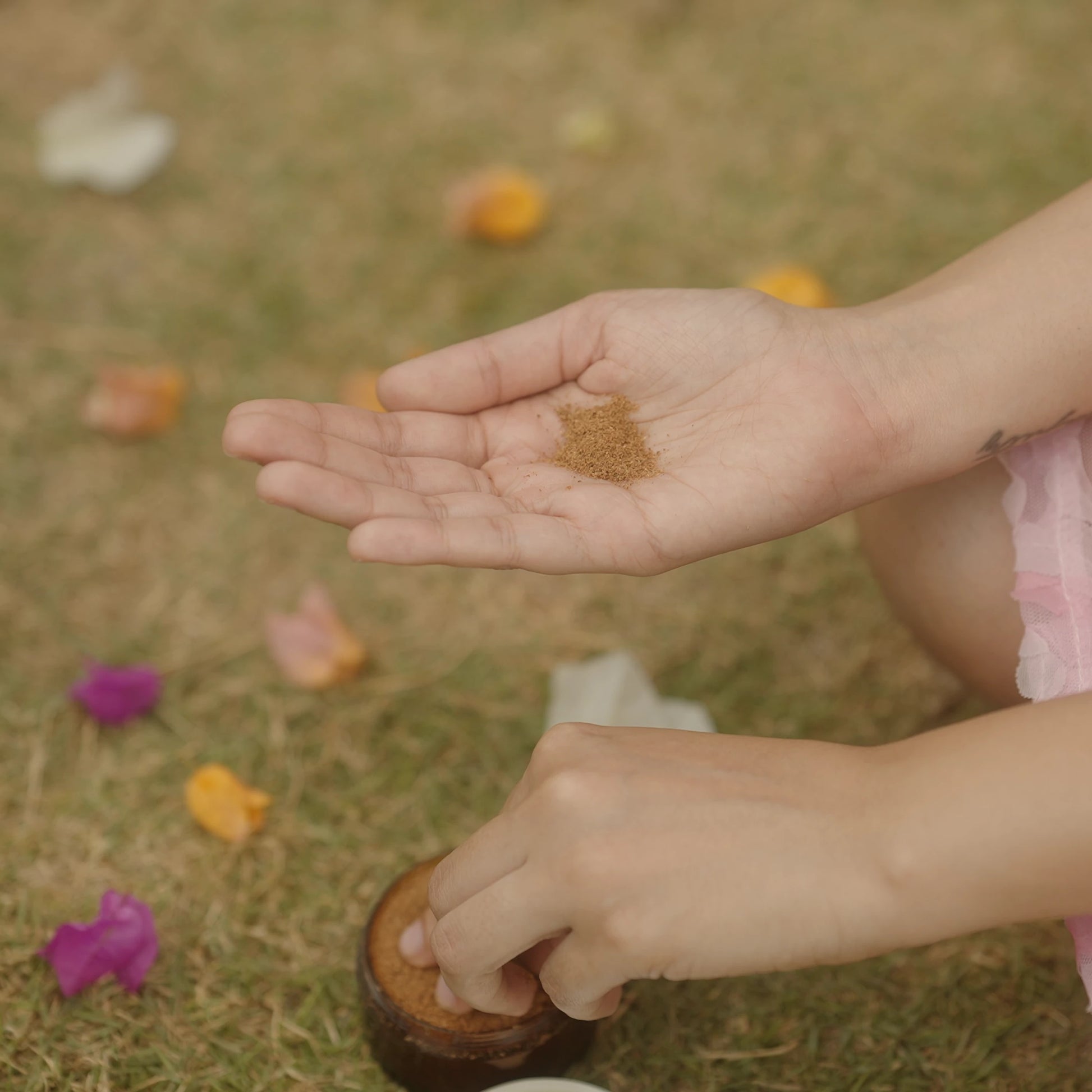 A brightening facial ubtan infused with Snow Lotus, Kaempferia, Basil, and Masoor Lentils to gently exfoliate, detoxify, and restore radiance. Enriched with Orange & Cow Ghee, it nourishes, softens, and enhances skin’s natural glow. Use as a cleanser, exfoliant, or face mask!