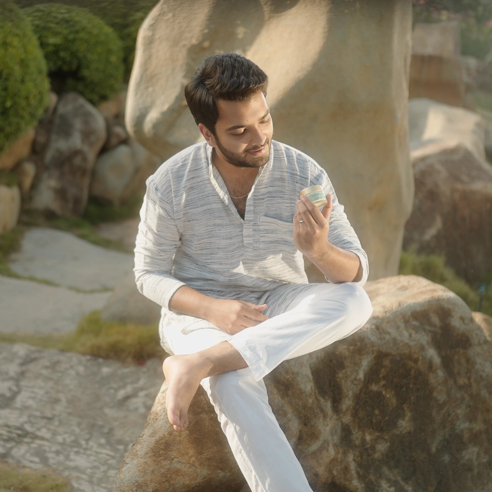 A cooling & healing foot cream enriched with Shea Butter, Aloe Vera, Peppermint & Turmeric to moisturize, soothe, and repair cracked heels. Infused with Neem, Ginger & Nettle, it nourishes, protects, and relieves tired feet with a refreshing herbal touch.