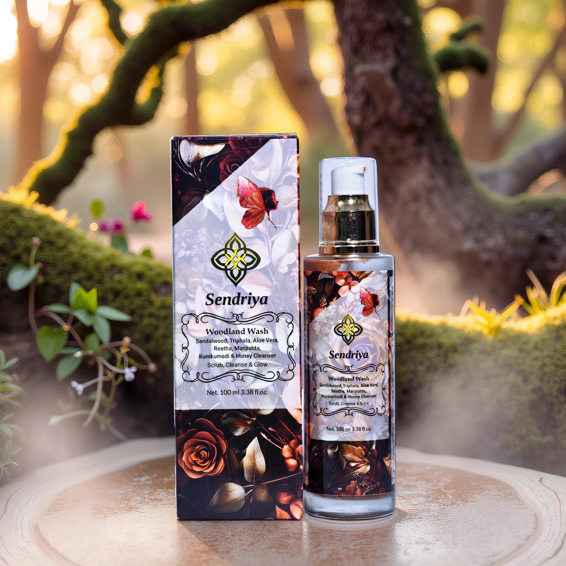 Woodland Wash : Sandalwood, Triphala, Aloe Vera, Reetha, Manjishta, Kumkumadi & Honey cleanser : Scrub, Cleanse & Glow